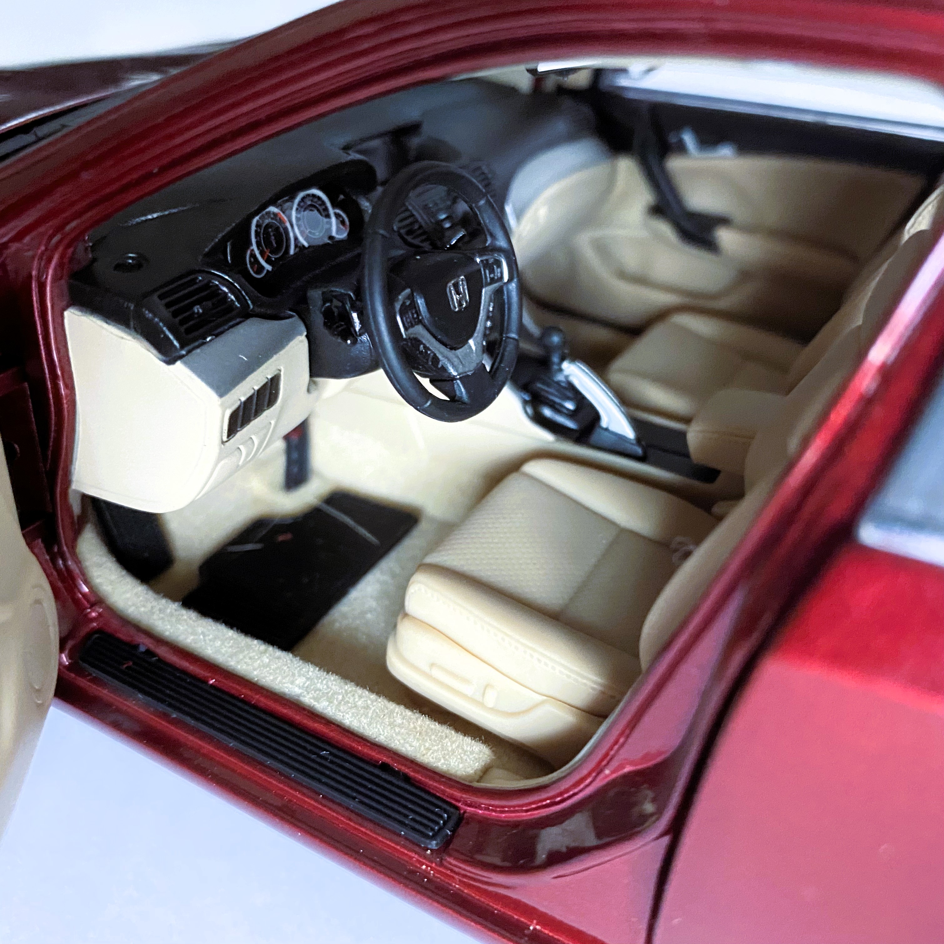 This is the peak of Accord-esque merchandise – amazing, very detailed 1/18 scale model of 8th generation Honda Accord/Spirior. It’s left hand drive, with detailed K24 engine bay. All doors open (including bonnet and trunk). You can also lift boot floor to access spare wheel, move front seats back and forth, fold side mirrors and open sunroof. Steering system and suspension is also fully operational. This is absolutely top notch model, very heavy and made from different materials – even seatbelts are made from fabric! Very rare and hard to get, but if you’d like us to hunt for one of these – get in touch ๐